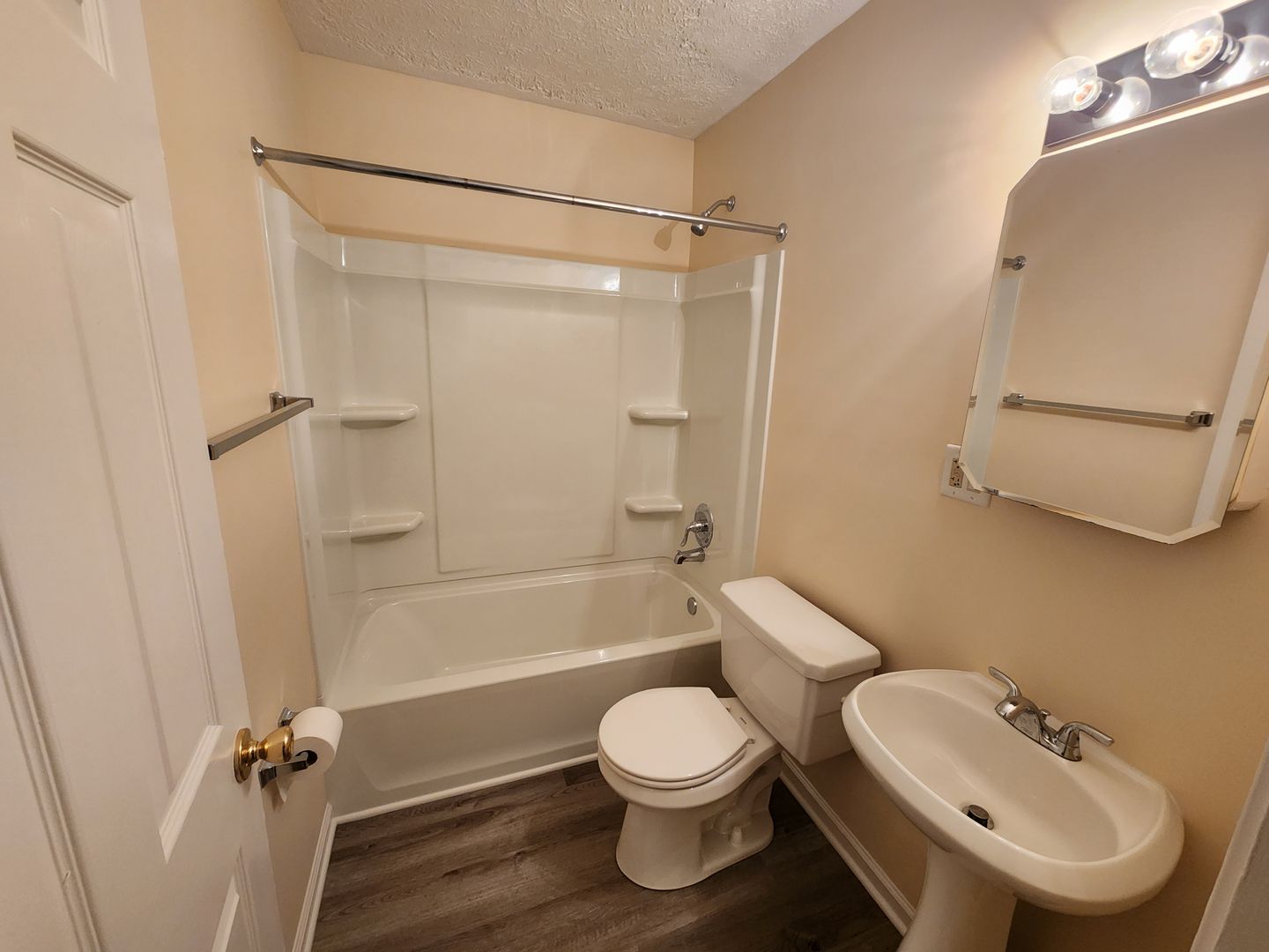 Updates include vinyl plank flooring, tub, and fresh paint