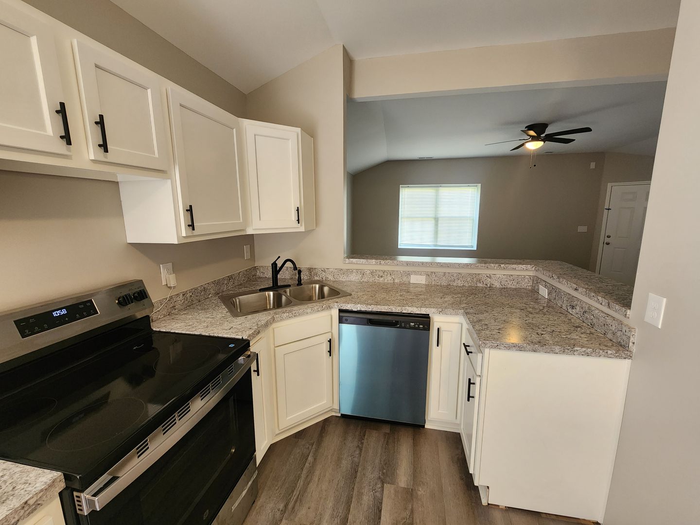Everything is new!! New kitchen, bathroom, new plank flooring throughout, with new carpet in bedrooms, ALL NEW!!